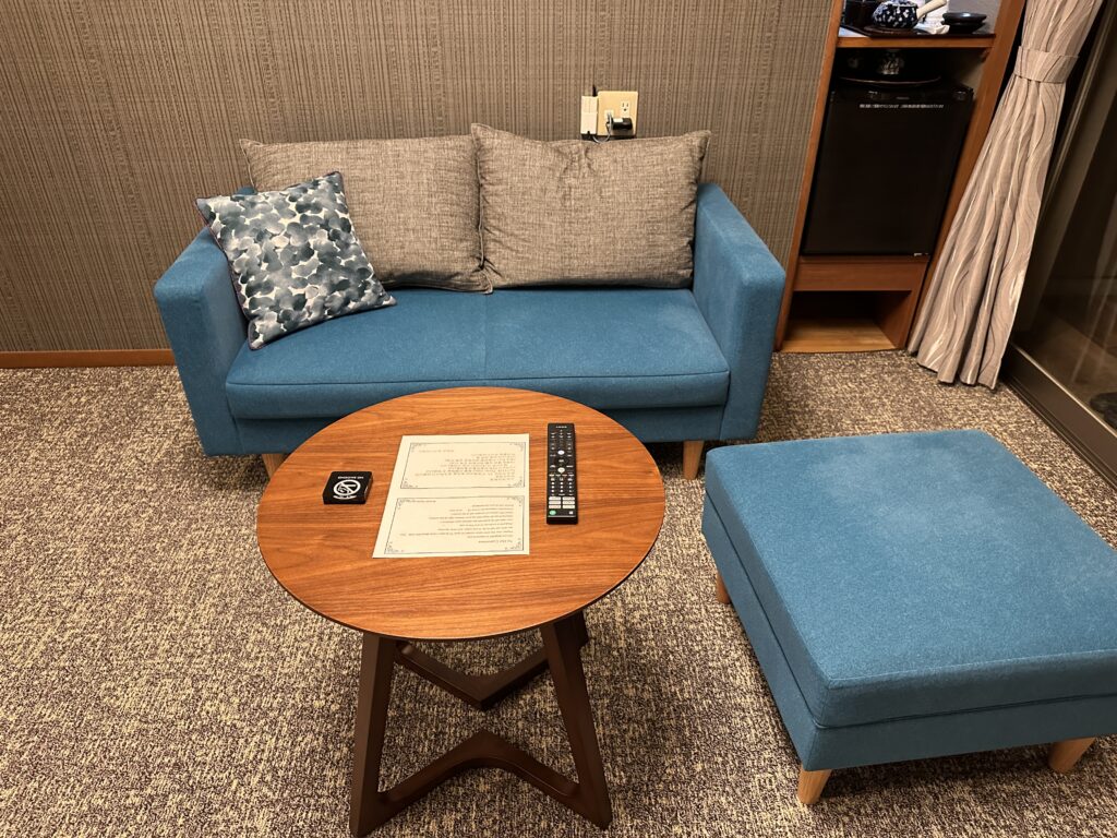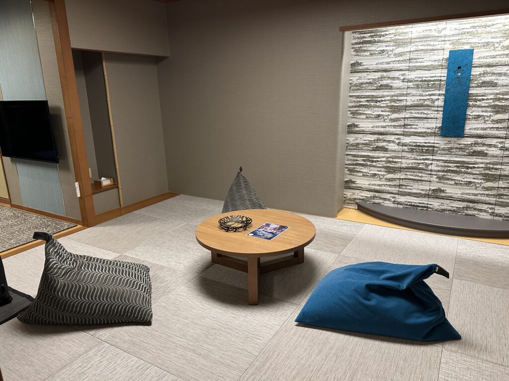 旁邊另一個空間是客廳,很棒吧!可以在這邊吃東西,像我們就會買水果、清酒、餅乾、泡麵,晚上一定要吃消夜。