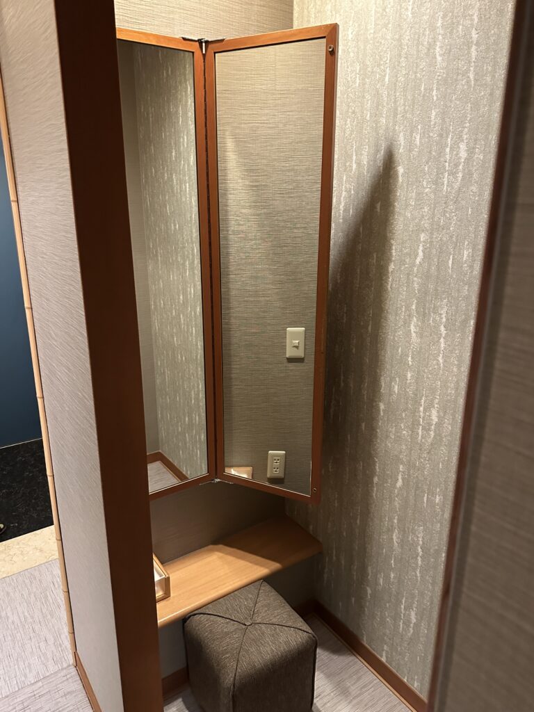 廁所前面有梳妝台,鏡子是蓋起來的,要用再打開。